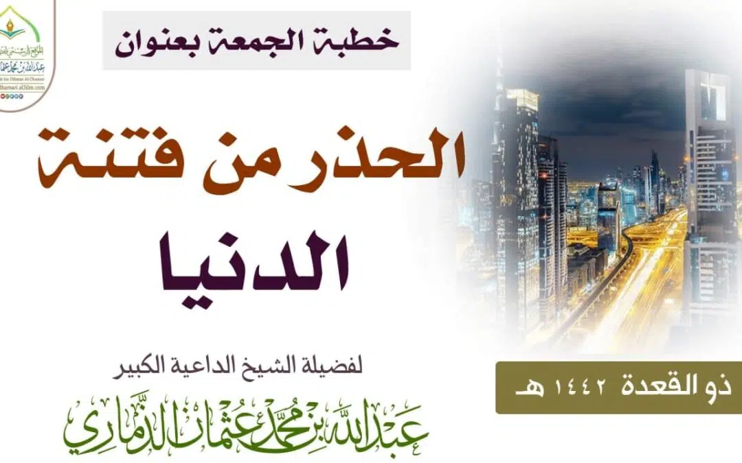 خطبة| الحذر من فتنةِ الدنيا الأحد ۱۳ محرم ۱٤٤۳ هـ الموافق ۲۲ أغسطس ۲۰۲۱ مـ | الخطب | شارك بتعليقك ﴿ الحذر من فتنةِ الدنيا ﴾ خطبة الجمعة لشيخنا الداعية الكبير: عبدالله بن محمد عثمان الذماري -حفظه الله تعالى- ألقيت في مسجد الصديق بمدينة ذمار بتاريخ: 22/ ذي القعدة /1442هـ. PlayStop نافذة X ننصح الجميع بسماعها ونشرها لتعم الفائدة ═══ ¤❁✿❁¤ ═══ مقالات ذات صلة خطبة | ﴿فضل الأعمال الصالحة في عشر ذي الحجة ﴾ خطبة| ماذا أودعنا في العام المُنصرم؟ فتنة الدنيا اترك ردإلغاء الرد