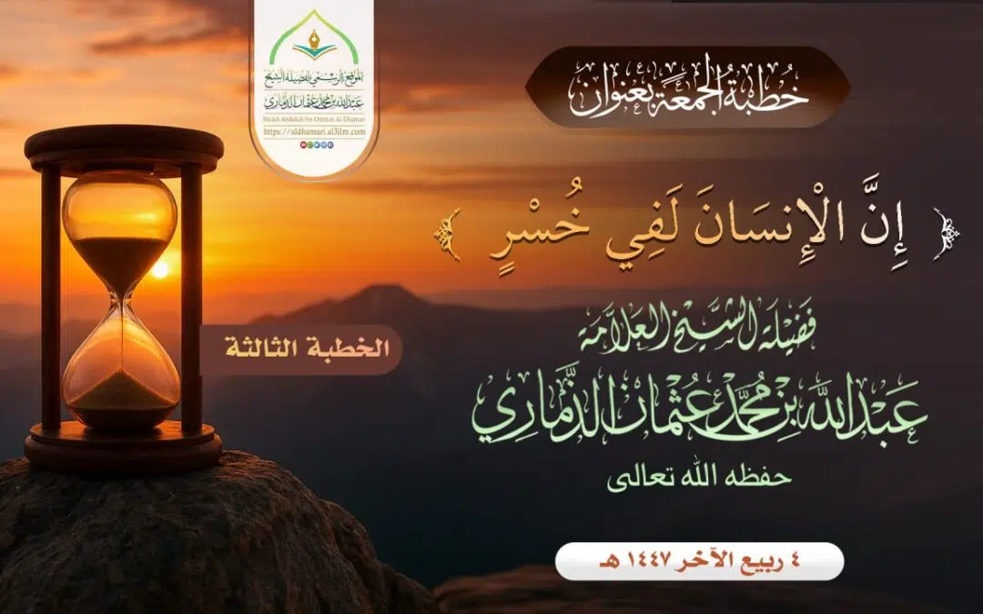 خطبة قيِّمة بعنوان ﴿ إنَّ الإنسانَ لفي خُسر ﴾ – الجزء الثالث – الأحد ٦ ربيع الثاني ۱٤٤۷ هـ الموافق ۲۸ سبتمبر ۲۰۲۵ مـ | الخطب | شارك بتعليقك ﴿إنَّ الإنسانَ لفي خُسر ﴾ الجزء الثالث خطبة مؤثرة لشيخنا الداعية الكبير: عبدالله بن محمد عثمان الذماري -حفظه الله تعالى- ألقيت في مسجد الصديق بمدينة ذمار بتاريخ 4 ربيع الآخر 1447هـ PlayStop نافذة X ننصح الجميع بسماعها ونشرها لتعم الفائدة ═══ ¤❁✿❁¤ ═══ مقالات ذات صلة خطبة قيِّمة بعنوان ﴿ إنَّ الإنسانَ لفي خُسر ﴾ - الجزء الثاني - خطبة قيِّمة بعنوان ﴿ إنَّ الإنسانَ لفي خُسر ﴾ - الجزء الرابع- إنّ الإنسان لفي خسر اترك ردإلغاء الرد